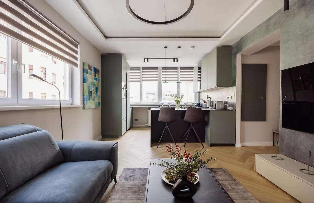 The apartment lies in the Wuelfel district, around 30 minutes on foot from the twin-towered Szechenyi Chain Bridge. Guests will find the town square "Batthyany ter" within a few blocks of the 60 m² apartment.